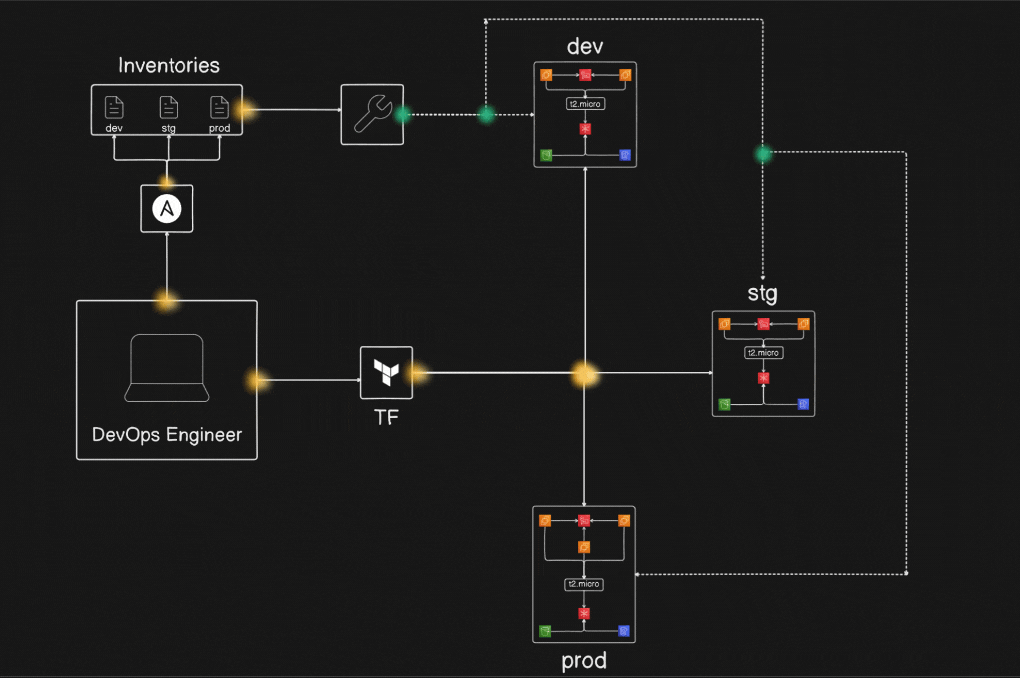 Designed reusable Terraform modules for dev, staging, and prod environments with automated Ansible configuration management.