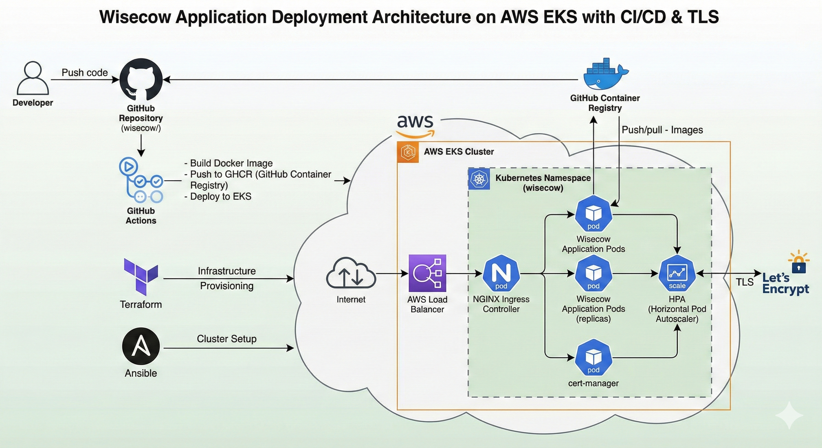 Deployed containerized application on AWS EKS with Terraform-provisioned infrastructure supporting 99.9% uptime.